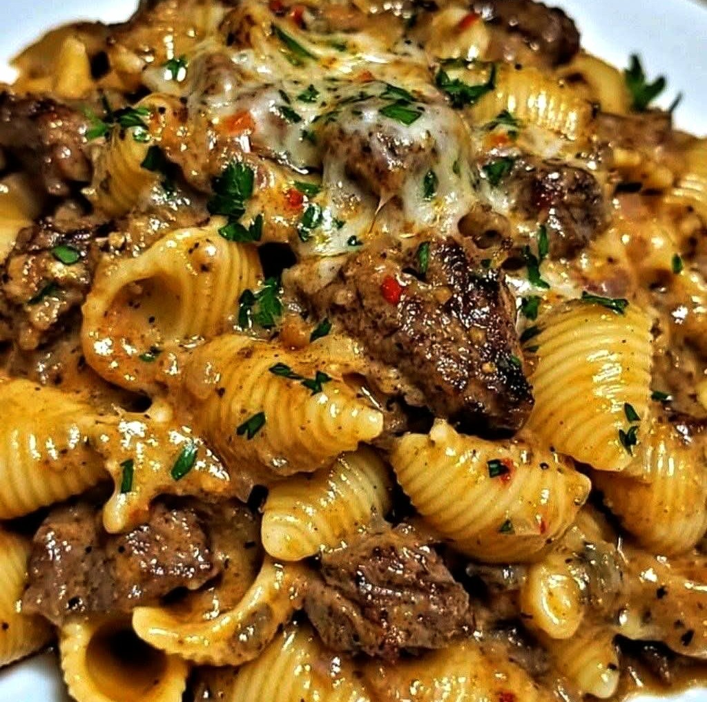 Bouchées de Steak à l’Ail et Coquilles Crémeuses au Parmesan