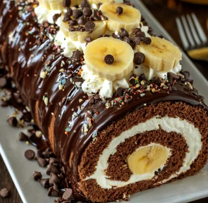 Bûche roulée chocolat banane, Recette bûche de Noël facile, Gâteau roulé au chocolat, Bûche chocolat mascarpone