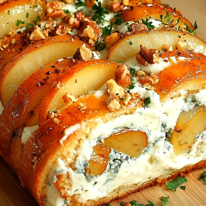 Cette bûche roulée salée poire, fromage bleu et noix est une recette élégante et originale, idéale pour les repas de fêtes, les buffets froids, ou une entrée raffinée. L’alliance sucrée-salée des poires caramélisées, du fromage bleu crémeux et des noix croquantes offre un équilibre parfait entre douceur, caractère et texture. Facile à préparer à l’avance, cette recette impressionnera vos invités sans stress.