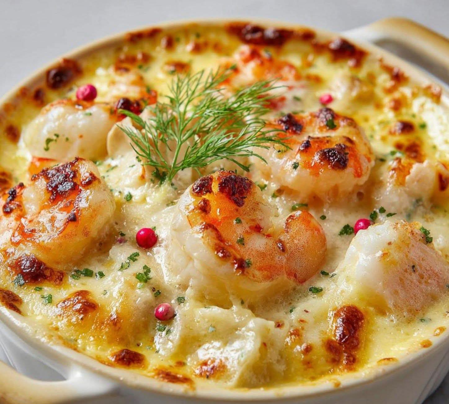 La Cassolette Fruits de Mer Gratinée est une recette française élégante et gourmande, parfaite pour un repas festif, un dîner romantique ou une entrée raffinée de Noël. Cette préparation associe noix de Saint-Jacques, crevettes roses et poisson blanc dans une sauce crémeuse au fumet de poisson, le tout gratiné au four avec du Comté ou du Gruyère pour une croûte dorée irrésistible.