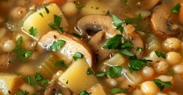 Soupe rustique aux légumes, champignons et haricots blancs