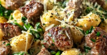 Bouchées de steak crémeuses au fromage et coquillettes aux épinards et à l’ail Si vous avez envie d’un plat de…