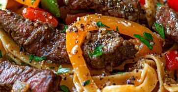 Pâtes au Steak et aux Poivrons Grésillants Ces pâtes au steak et aux poivrons grésillants sont un plat complet…