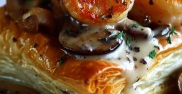 Feuilleté Croustillant aux Crevettes et Champignons à la Sauce Crémeuse Ce feuilleté croustillant aux crevettes, champignons et sauce crémeuse…