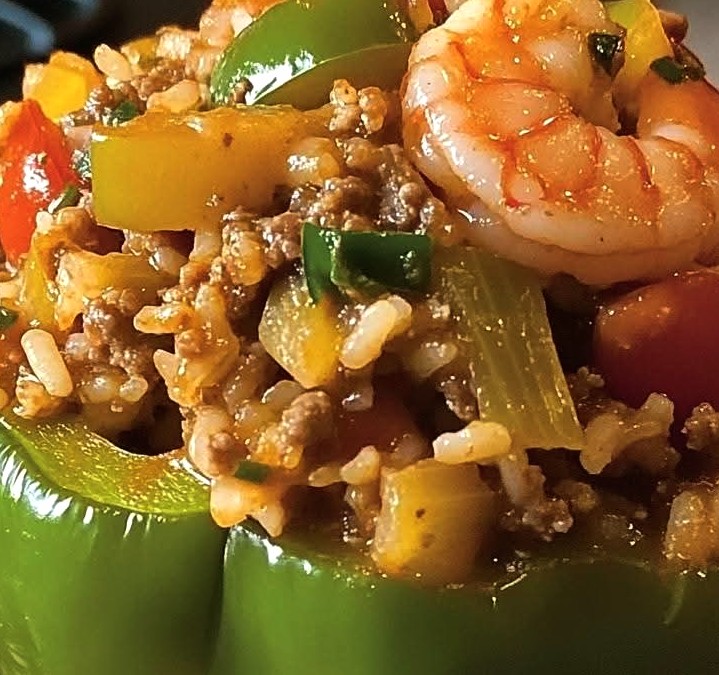 Poivrons farcis aux fruits de mer et au bœuf à la cajun