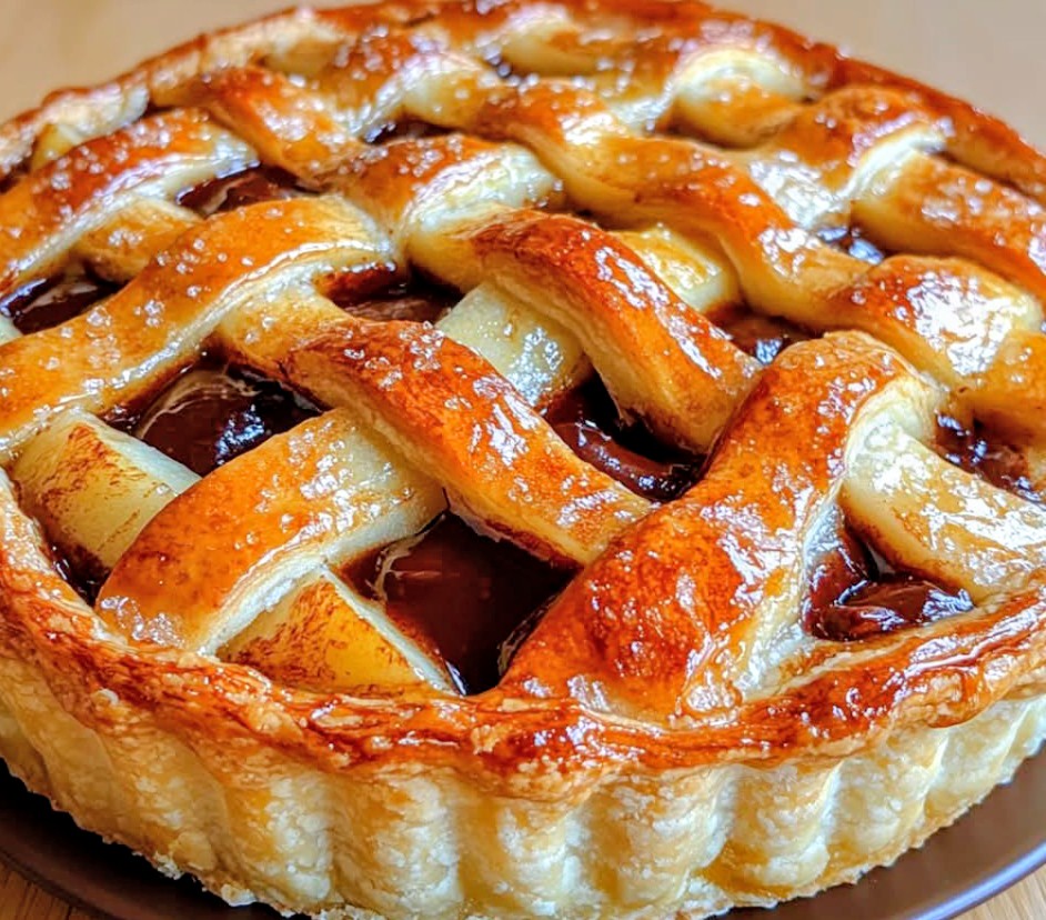Cette tarte feuilletée aux pommes et caramel est un dessert rapide, économique et irrésistiblement gourmand. Avec sa pâte feuilletée croustillante, son treillis doré et sa garniture fondante pommes-caramel, elle est parfaite pour un dessert familial, un goûter maison ou une fin de repas élégante sans effort.